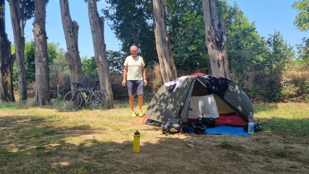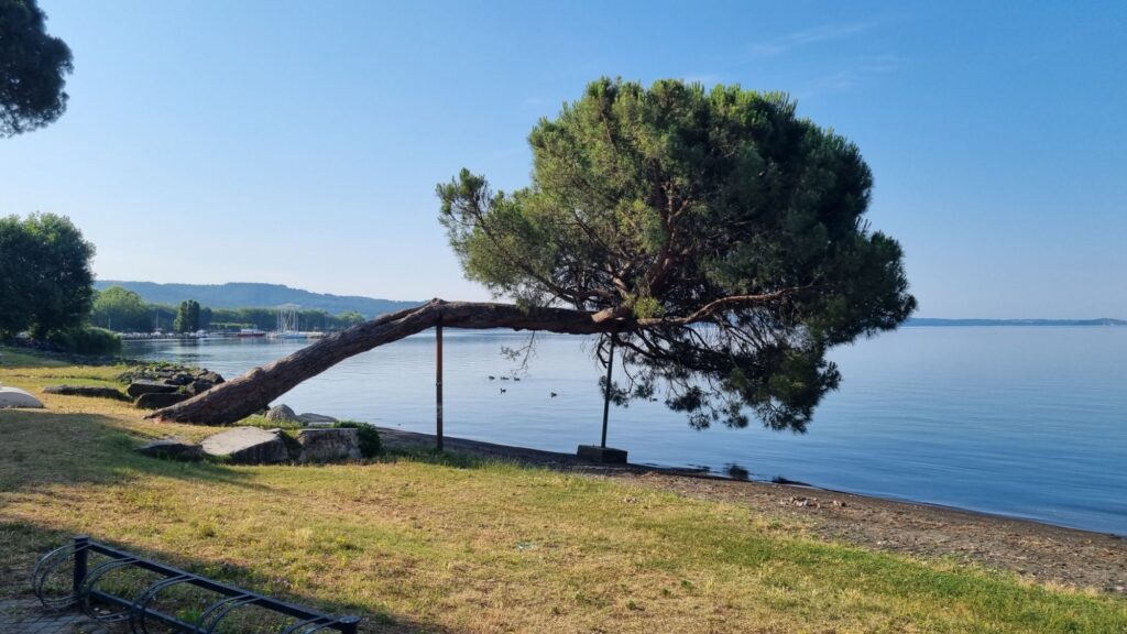 Ich wollte heute ausschlafen und dann eine kleine Runde um den Bolsenasee fahren. Zuerst war ich wieder kurz vor 6 Uhr wach, dann drehte ich mich nochmal um: es sollte ja ein Urlaubstag werden. Um 7:15 wurde ich wieder wach, auch weil die Sonne aufs Zelt schien.