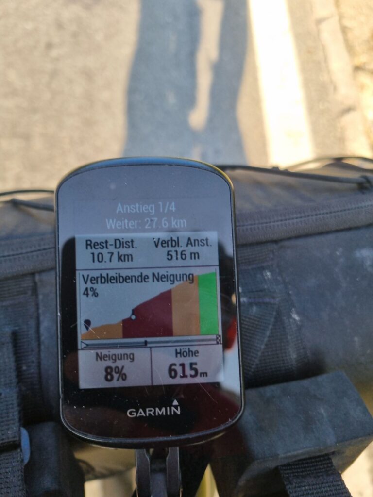 Ungefähr da, wo dieses Foto entstand, zeigte mein Tacho den ersten Berg an.
