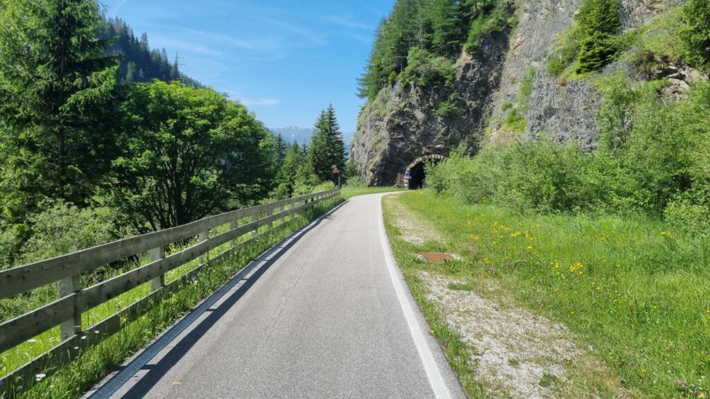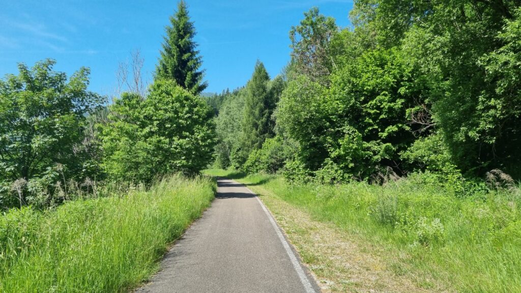 Kurz darauf ging es, für etwa 10 km, über einen ganz tollen Radweg, entlang einer stillgelegten Eisenbahnstrecke, super Belag, stets bergab und in den Tunneln ging das Licht automatisch an.