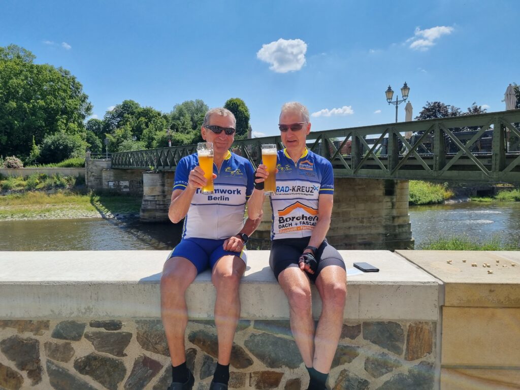 Es wurde immer wärmer, und so machten wir schon in Gera eine erste Pause am Fluss.