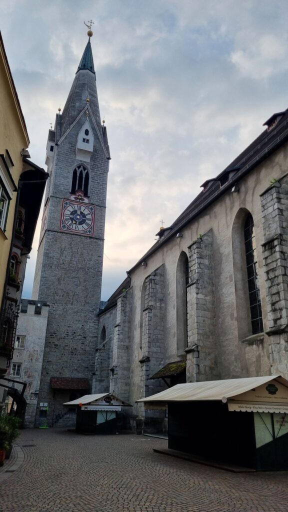 Ich fuhr noch kurz durch Brixen, in der Hoffnung auf eine geöffnete Bar. Die Bar am Camping hätte erst um 7:30 aufgemacht. Bei der Gelegenheit fotografierte ich ein paar Kirchen - ohne Menschen. Die Bars waren alle zu!