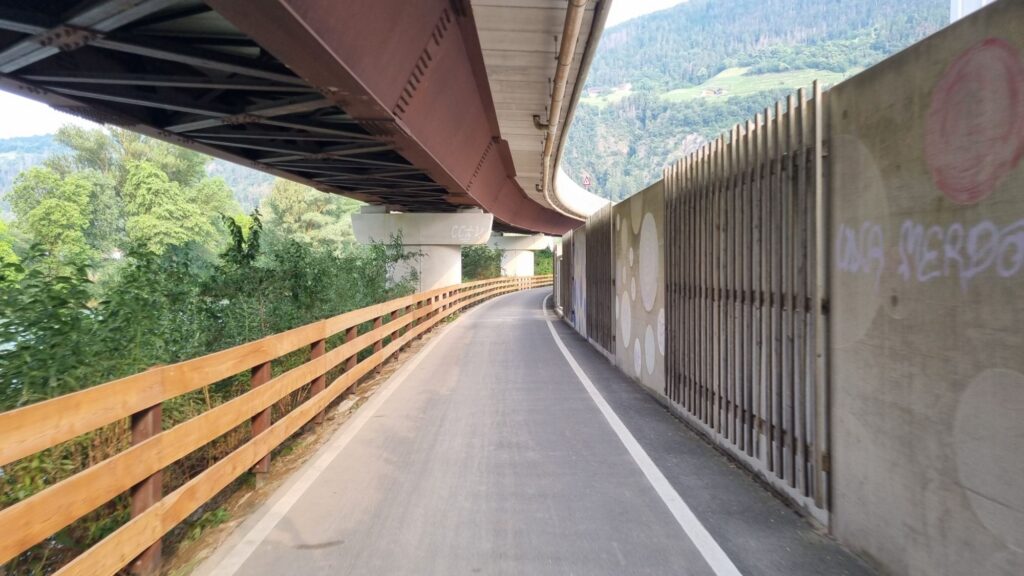 Nach Brixen ging es dann ohne Pause bis Bozen. Das war der schönste Abschnitt heute, vielleicht weil es noch frisch war oder weil es am merklichsten bergab ging.
