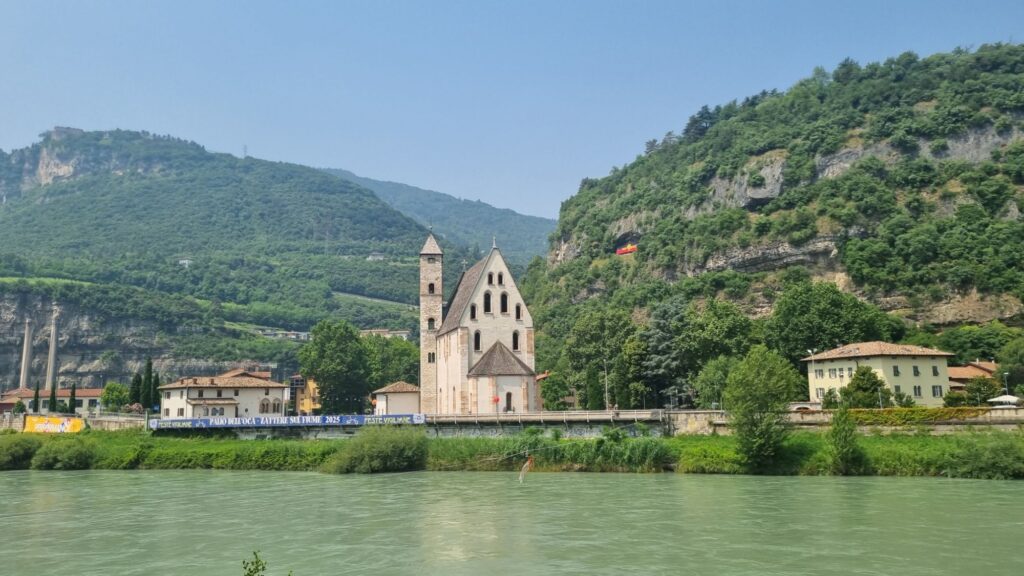 Durch Bozen ging es unter und über Autobahnbrücke und entlang dem Etsch-Deich.