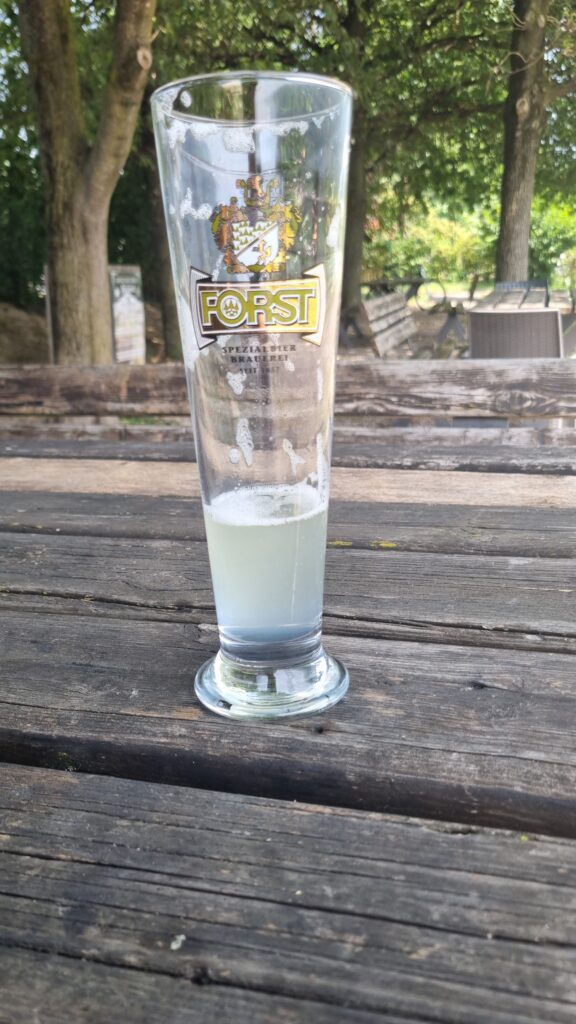 Über diese Brücke bin ich gefahren, habe dann von der anderen Seite aus eine Bar gesehen. Im Internet geprüft, dass sie offen hatte und dann wieder zurück. Ein sündhaft teueres Radler und 3 Wasserflaschen, dann war die Panik wieder weg.