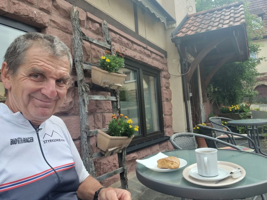 In Hausen, bei Bad Kissingen, machte ich dann die erste Pause vor einer Bäckerei. Ein älterer Franke unterhielt sich nett mit mir.