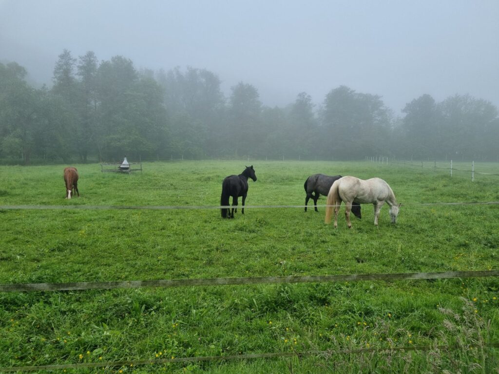Am frühen Morgen war es noch neblig, zumindest im Tal. Aber es ging gleich richtig los mit einem ewig langen Anstieg auf den Keltenradweg. Oben war es dann sonnig und warm.