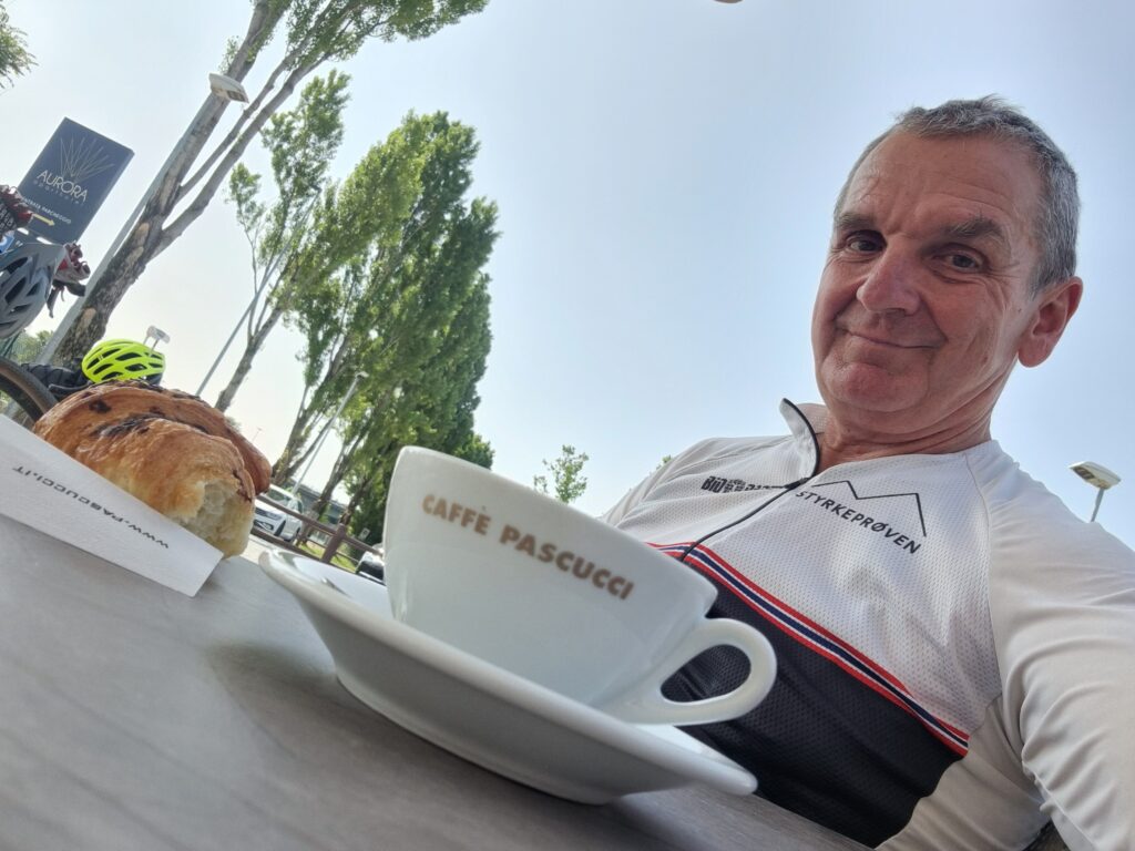 Am Ortsausgang, am (Gardasee-Ab)fluss Mincio, konnte ich frühstücken, mit Cappo, Cola und einem Cornetto von gestern (oder vorgestern). Ein Gefühl wie bei einem richtigen Urlaubstag!