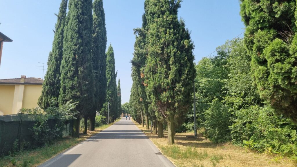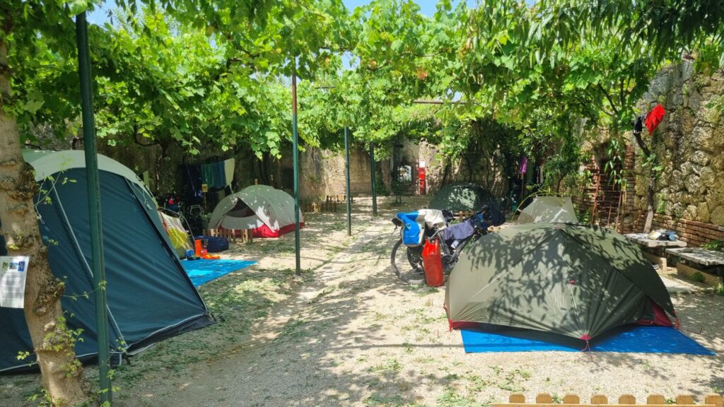 Die letzten Kilometer wurden trotzdem wieder anstrengend, weil es immer heißer wurde. Besonders erwähnenswert war die Fahrt hoch auf das Castel San Pietro, wo der Campingplatz lag. Das war leider nochmal richtig anstrengend. Und so stand ich um ca 13:00 ziemlich verschwitzt beim Einchecken.