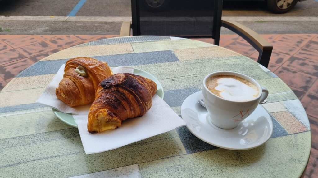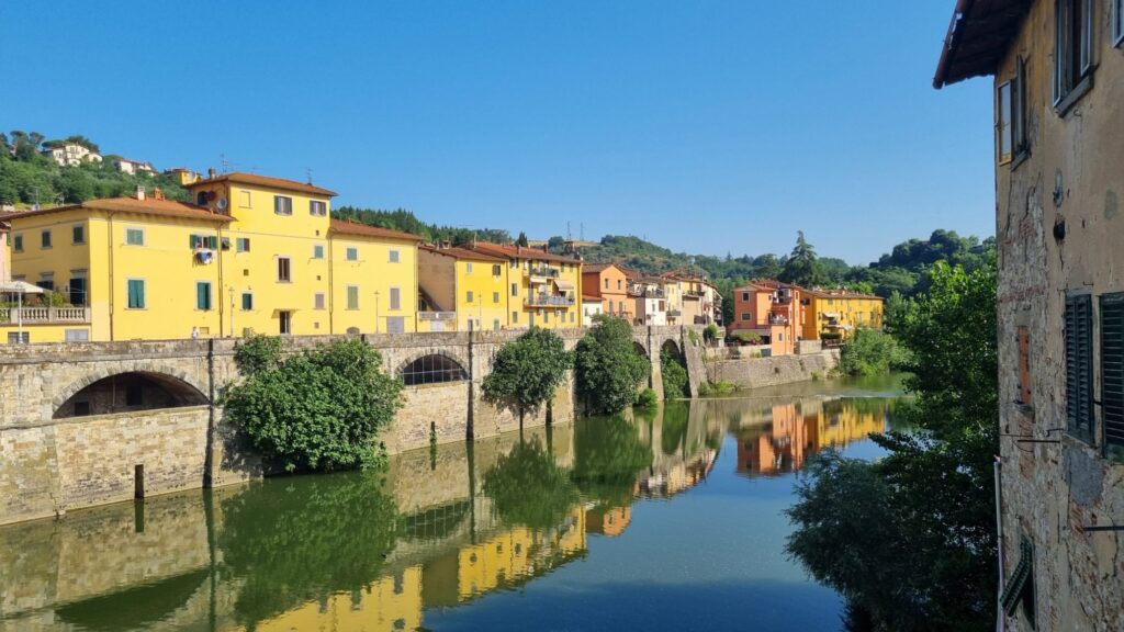 Zunächst ging es etwas auf der Höhe weiter mit auf und ab, anschließend runter zum Arno, wo ich in Le Sieci kurz in einer Bar frühstückte.