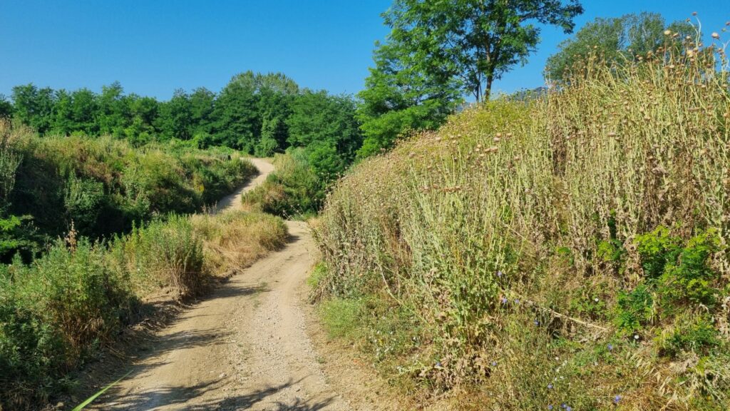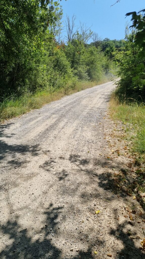 Aber immer, wenn etwas sehr schön ist, dann hört das auch wieder auf und plötzlich befand ich mich auf einer Strade Bianche durch das Naturschutzgebiet "Riserva Naturale Ponte a Buriano e Penna". Eine nette Autofahrerin, die mich dort am Verzweifeln fand und mir Wasser gab, erklärte mir, dass sich "Bianche" auf den sehr hellen Schotter der Straßen bezieht. Jedenfalls stand ich vor einem 1 km langen Berg eben jenen Schotters mit deutlich über 10% Steigung.