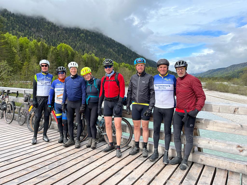Den Tag begannen wir mit dem schlechten Omen des wie üblich letzten Platzes beim ESC für Deutschland (mit den passend benamten „Lord of the Lost“), ließen uns dadurch aber nicht die Laune trüben (den allermeisten war´s sowieso egal). Das Frühstück rustikaler als in der Post, aber es fehlte an nichts. Wie sich später herausstellte, hatten einige Teilnehmer (generisches Maskulinum) das ausgehängte Schild übersehen, das Mitnahme von Speisen strengstens untersagte, und Wegzehrung eingepackt. Nachdem wir unsere Räder aus der Garage geholt hatten, starteten wir pünktlich bei 4,5 Grad und es wurde bis Grünwald nicht wärmer als 7/8 Grad, blieb aber, von einigen wenigen angedeuteten Nieseltröpfchen abgesehen, trocken.