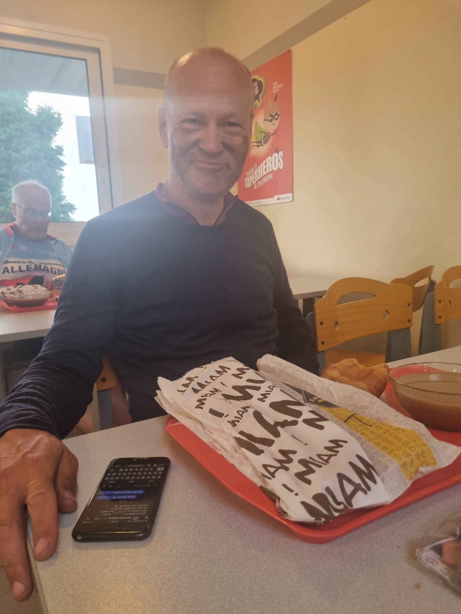 Zuerst ging es im Dunklen über 50 km nach Loudéac (gesamt 782 km), wo wir um 7:50 Uhr ankamen. Damit hatten wir die Pause in der Nacht wieder aufgeholt: Bis 8:31 Uhr hätten wir Zeit gehabt.