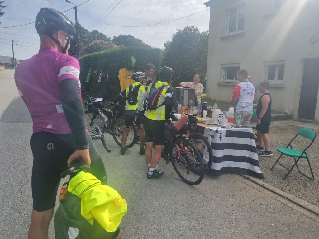 In Quédillac (gesamt 842 km) hatten wir auf dem Hinweg sehr gut geschlafen. Jetzt, auf dem Rückweg, wurde schon langsam mit dem Rückbau der Verpflegungsstation begonnen. Es waren nicht mehr sehr viele Radfahrer da. Trotzdem machten wir in Quédillac eine kurze Pause mit 15 min Powernap.