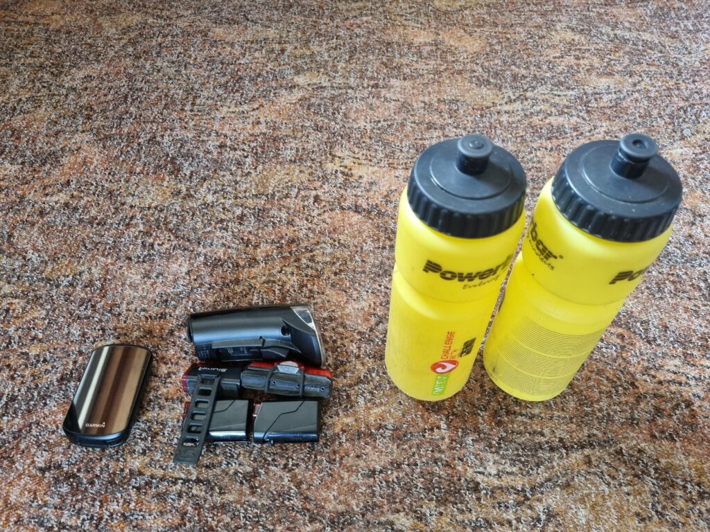 Ansonsten am Rad: Flaschen, Belechtung, Garmin)