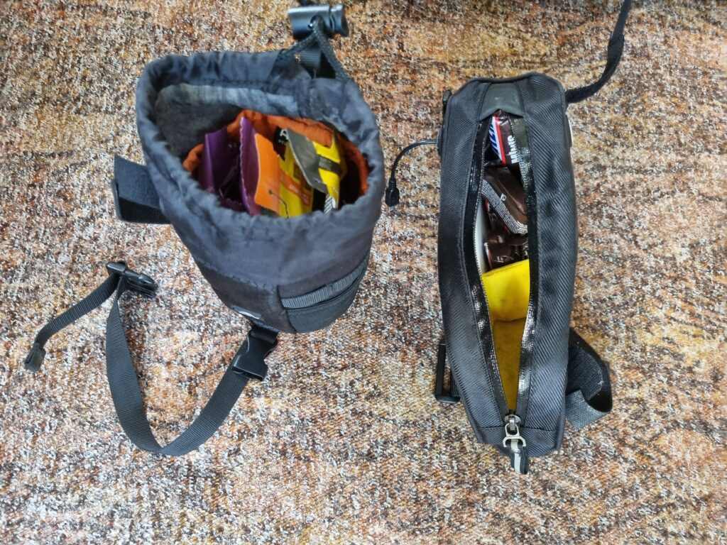 Verpflegung kommt in die Oberrohrtasche (in der auf eine 5mA Powerbank für den Garmin ist)